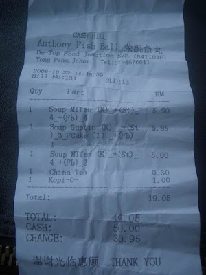Do you feel angry looking at this receipt? because i sorta do, it is so complicated, anyway i think each piece of yong tau fu is RM0.70. and tax are probably calculated in which explains the RM19.05.