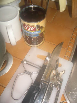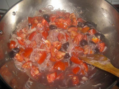 Add in tomato, canned cherry in its juice, increase the heat to boil it up. This have to be cooked down to thick jam consistency.
