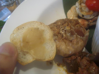 This is how you eat roast garlic: dig out individual clove of garlic, smear the creamy goodness onto toast.