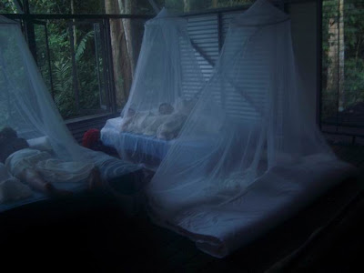 bedroom upstairs, 2 queen size beds and 2 single beds. this is the common and the one and only bedroom in the glass house.
