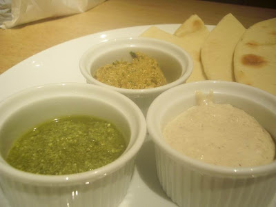 Trio Dips, RM14.90, i love dips, above are pesto(greenish), unknown salty parmesany dip and a yoghurty dips, not sure what they are, but they taste great with the warm pita.