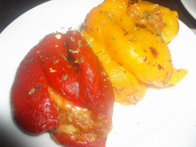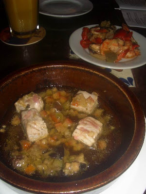 third tapas: sweet mini peppers stuffed with goat cheese & spicy eggplant salsa. no bad, almost wanted to try goat cheese. 🙂