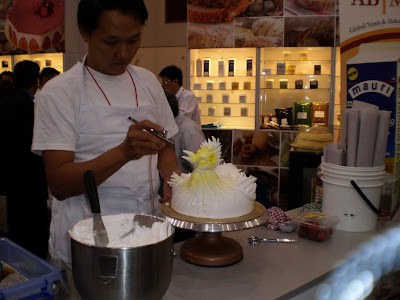 left about MIFB, this is the cake decorating starts… where cream are spread on top of sponge cake.