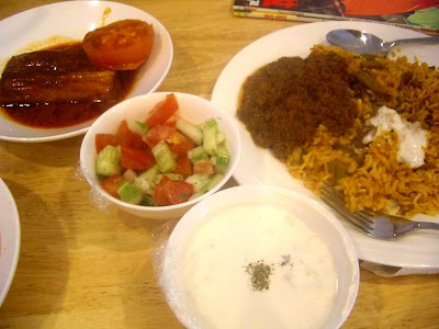 lamb shank dish, RM19, side dishes(refreshing salad, yoghurt cucumber tzatziki sauce, potato+pea+tuna mash, each priced at RM1.90… really nice side dishes), the lamb shank has its distintive lamb smell which i am not particularly fond of.