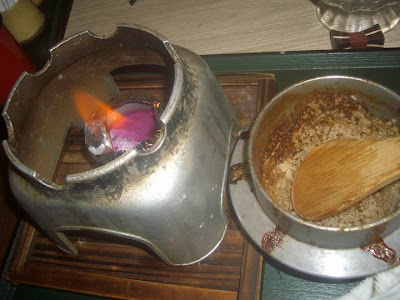 So this is how the iron pot looks like deconstructed, cool eh? They use some kind of kerosine to cook the rice, assumingly raw rice for 15 minutes.