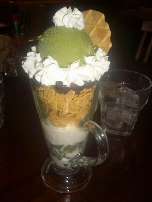 RM 15, layers of green tea jelly, vanilla ice cream, corn flakes, mashed red bean, green tea ice cream and fresh cream, lovely dessert with the right crunch and sweetness.