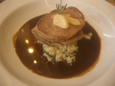 Sliced beef with risotto, love the brown sauce, the risotto and beef taste good.