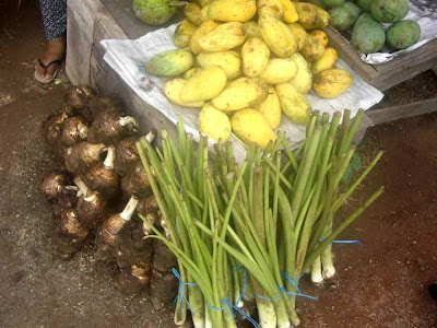 taro, taro vege, mango, papaya etc.