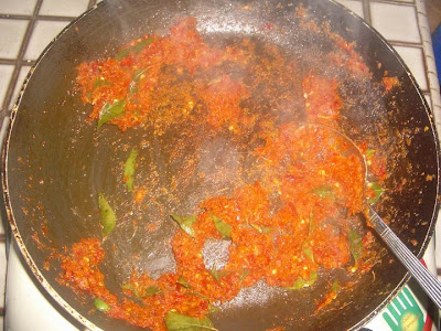 till it become dried up and fragrant as above, shown above is half of the cooked chili paste, i have already scoop up half of it, save it for curries ;P
