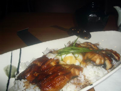 unagi rice, i wish it was less sweet, served with half boiled “mountain egg” (as written in menu)