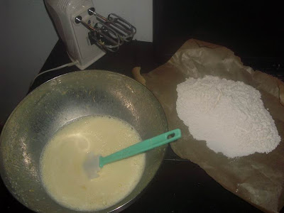 drizzle in olive oil, make sure it is a small and steady stream, so that an an emulsion can be created. Recipe specified the success of this cake depends wholely on how good the olive oil is, but here i am using a really cheap olive oil from Cold Storage house brand – First choice, using extra virgin olive oil will prolly yield better result.