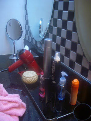 dressing table: cotton bud, styling products