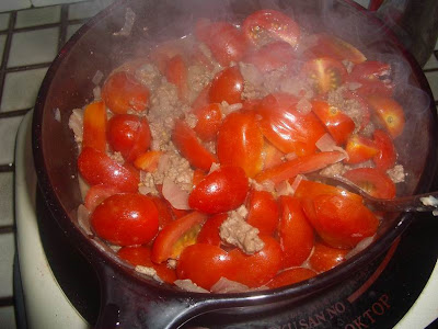 Yummy salmon spaghetti cooked by bf, with dried chilis, some dried chilli paste (those used for dried pan mee), an odd tomato, white mushroom etc.